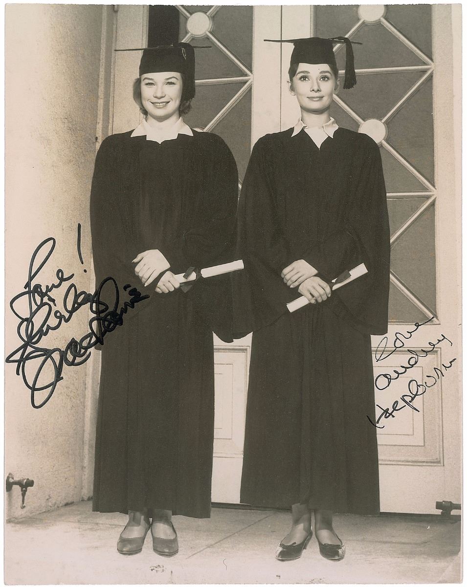 Vintage matte-finish 8 x 10.25 photo of Hepburn and MacLaine in the 1961 film The Children’s Hour, signed in black felt tip, “Love! Shirley MacLaine” and “Love, Audrey Hepburn.” In fine condition, with trivial wear to edges.