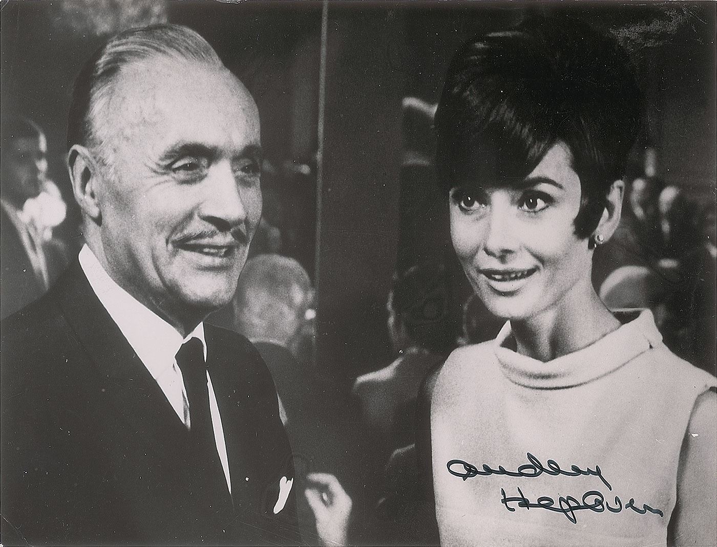 Glossy 8.5 x 6.5 photo of Hepburn with Charles Boyer from the 1966 film How to Steal a Million, signed in black felt tip by the actress. Reverse bears German caption text. In fine condition, with creasing to the two left corners.