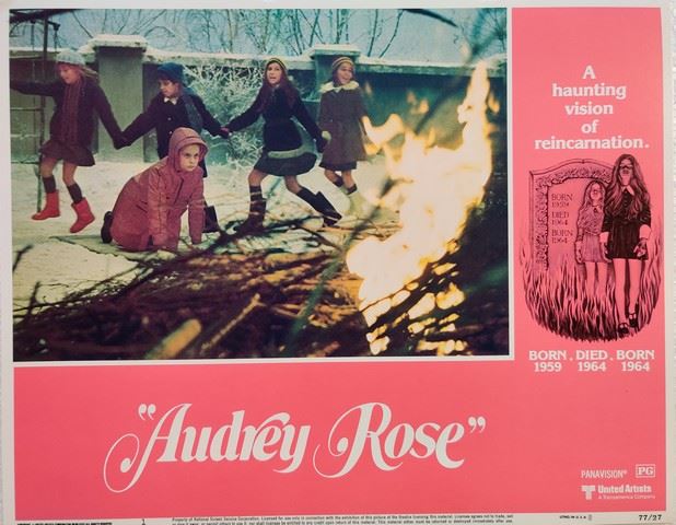 Audrey Rose (United Artists, 1977) lobby card. Horror, Drama, Thriller. Starring Anthony Hopkins, Marsha Mason, John Beck, Susan Swift, Norman Lloyd, John Hillerman, Robert Walden, Philip Sterling. Directed by Robert Wise. Mint. (11"x14").