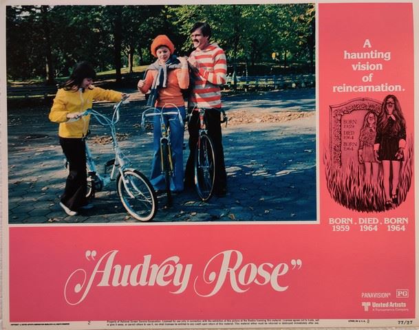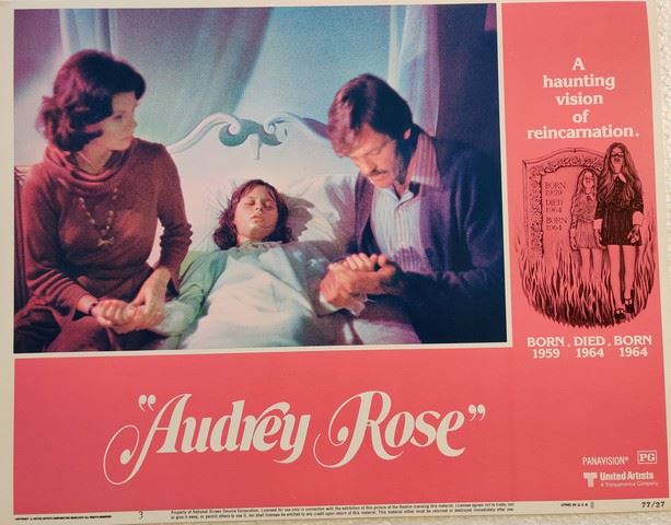 Audrey Rose (United Artists, 1977) lobby card. Horror, Drama, Thriller. Starring Anthony Hopkins, Marsha Mason, John Beck, Susan Swift, Norman Lloyd, John Hillerman, Robert Walden, Philip Sterling. Directed by Robert Wise. Mint. (11"x14").
