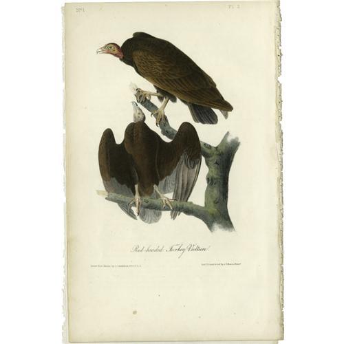Audubon Royal Octavo Print. Red-headed Turkey Buzzard Audubon Royal Octavo Print.