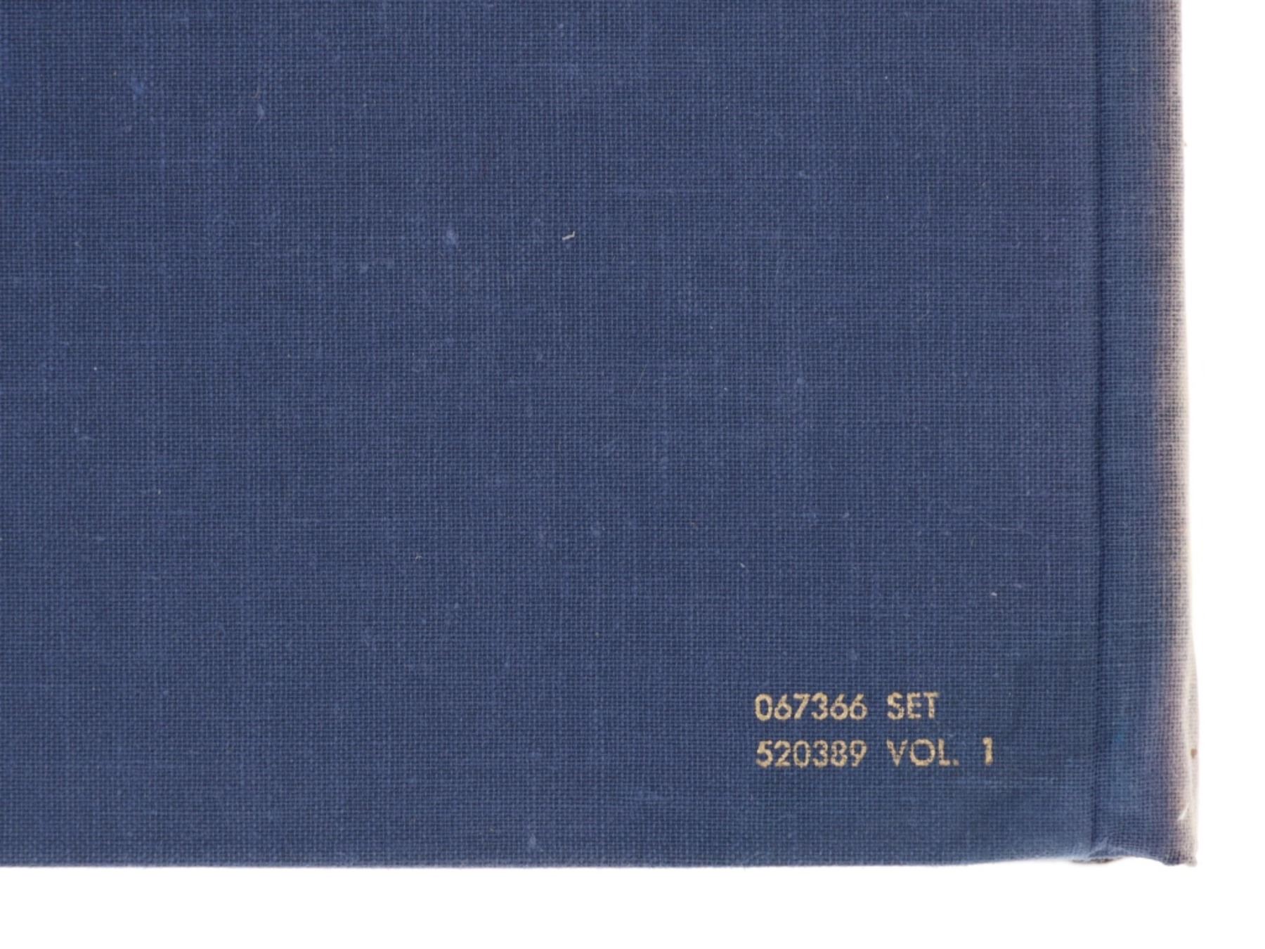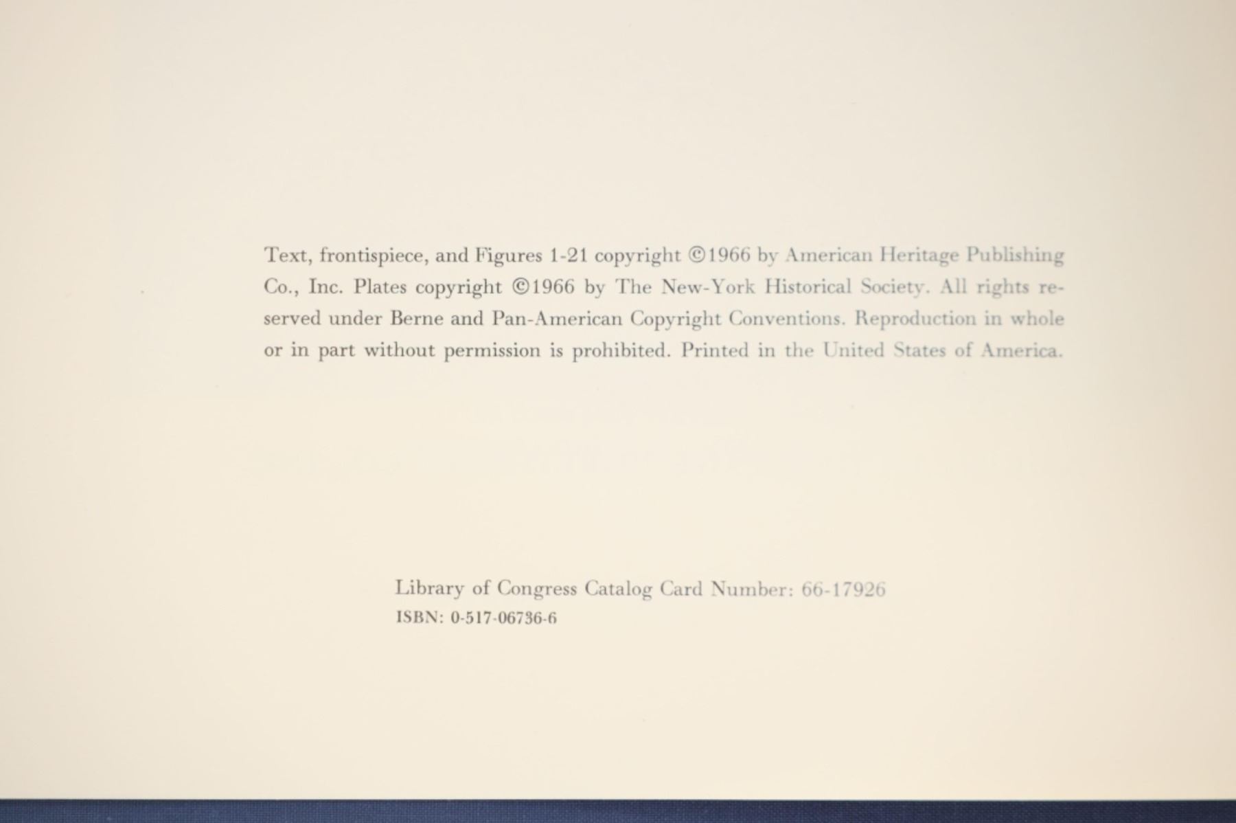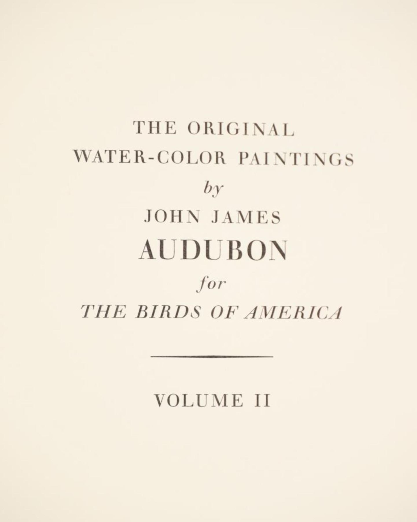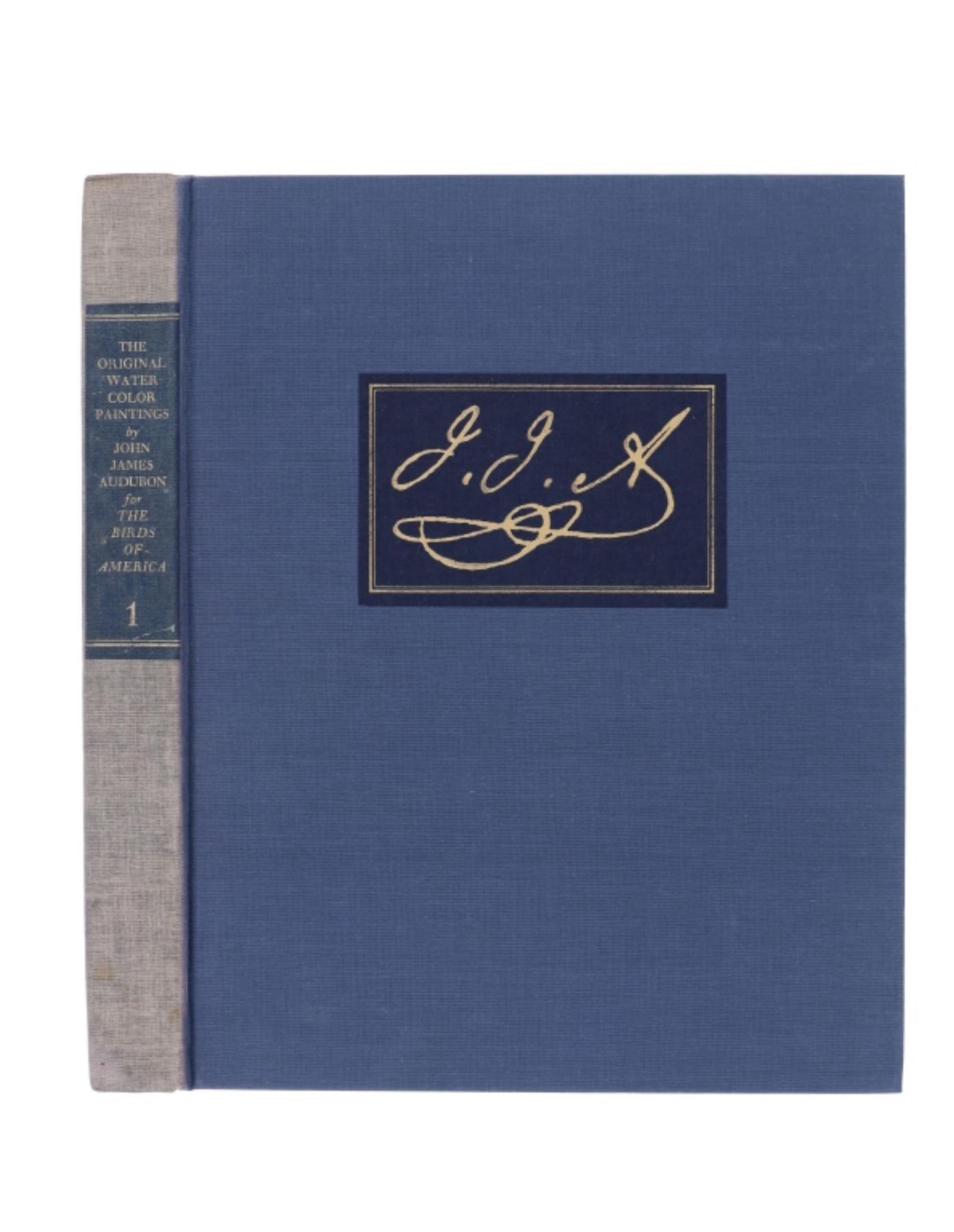 This lot contains the First Edition of "The Original Water-Color Paintings by John James Audubon for The Birds Of America," American Heritage Publishing Co., Inc., New York, 1966. Two (2) volumes in the publisher's original marbled paper covered slipcase. Illustrated with 431 full-page, full-color, plates, including full-page color frontispiece portrait of Audubon by John Syme. John James Audubon's Birds of America is a portal into the natural world. Issued serially in installments over a period of 12 years, Birds of America stands not only as one of the most beautiful books ever created, but also as an important contribution to the ornithological field: of the 435 birds illustrated in the work's four volumes, 25 were previously undocumented, and six are now extinct. John James Audubon (1785-1851) was a self-taught ornithologist, naturalist and artist. He was notable for his extensive studies documenting all types of American birds and for his detailed illustrations, which depicted the birds in their natural habitats. The Birds of America, Audubon's collection of lifelike drawings, was a feat of artistry, technical skill and determination, and is one of the finest ornithological works ever completed. The volumes are in very nice, pristine condition, unmarked, unread, tight, square, and clean. Blue cloth bound gold gilt hardcovers. Blue cloth covered gold gilt slipcase shows wear at the edges and spine. Intact pages. Slipcase with volumes measures 14"L x 11.25"W x 3"D, weight 14lbs.