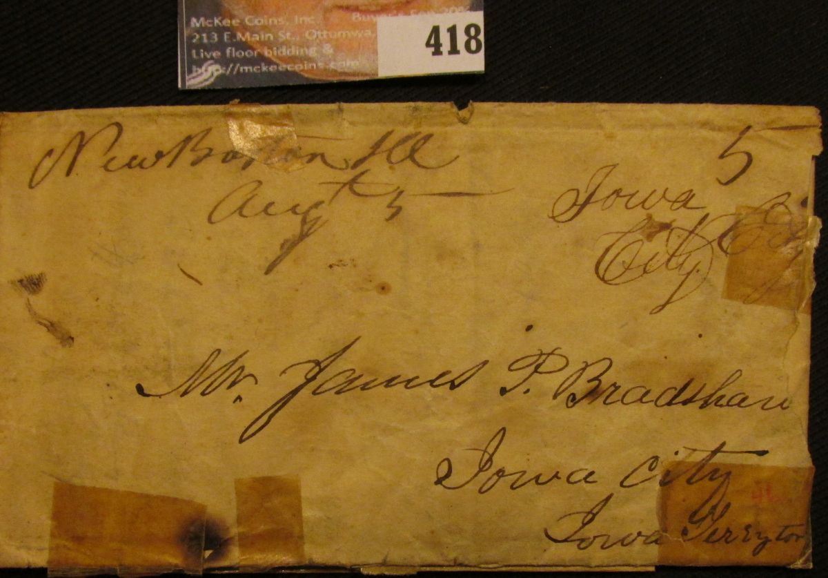 Aug. 4th, 1846 Letter from New Boston, Ill. demanding payment of a debt and asking for land to secure the note. Addressed to Iowa City, Iowa.