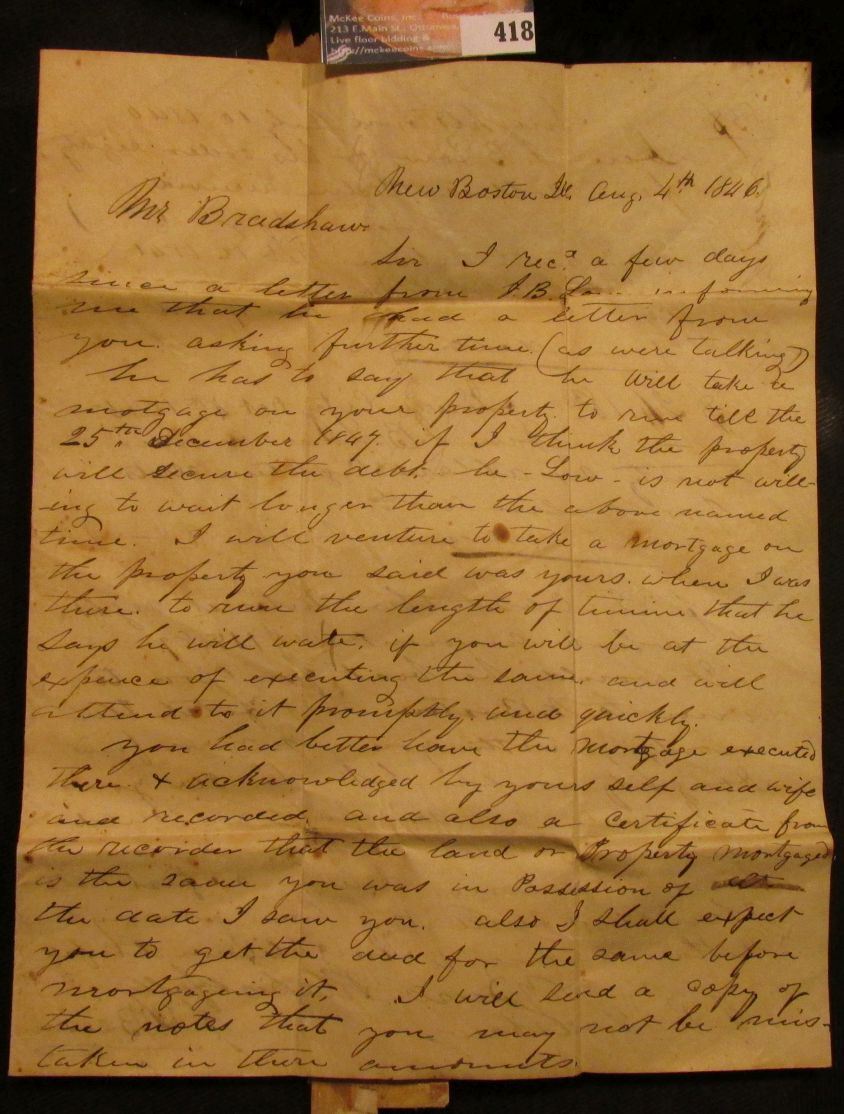 Aug. 4th, 1846 Letter from New Boston, Ill. demanding payment of a debt and asking for land to secur