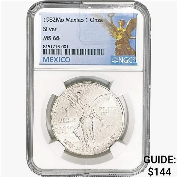 1982Mo 1oz. Silver Mexicanos Onza NGC MS66