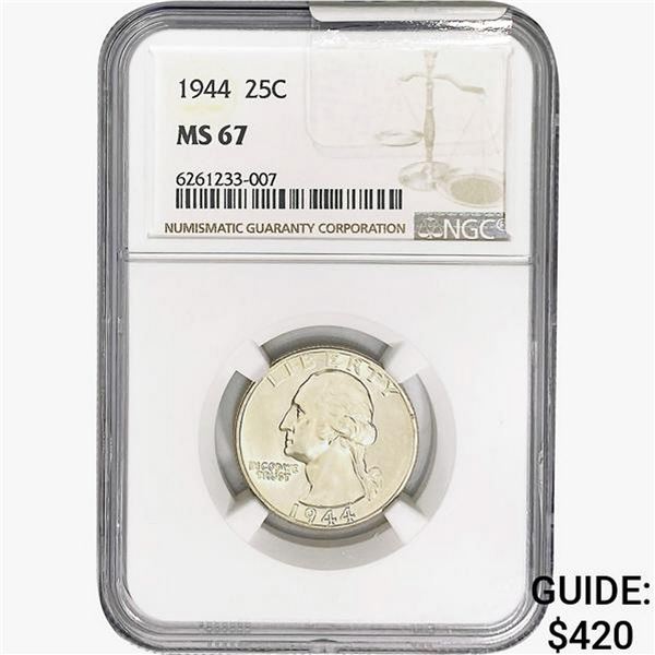 1944 Washington Silver Quarter NGC MS67