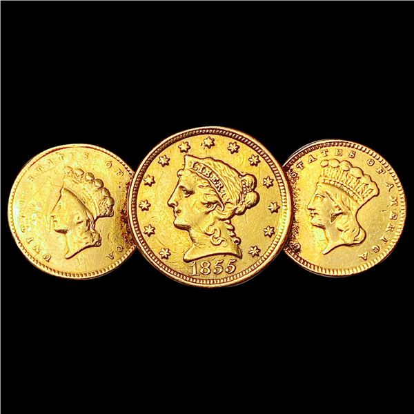 1854-1859 US Gold Coinage Pin [3 Coins] HIGH GRADE