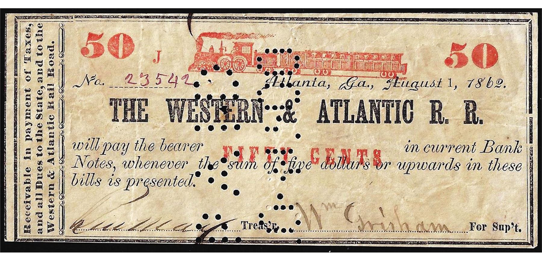 One August 1, 1862 The Western & Atlantic Railroad Obsolete Note.