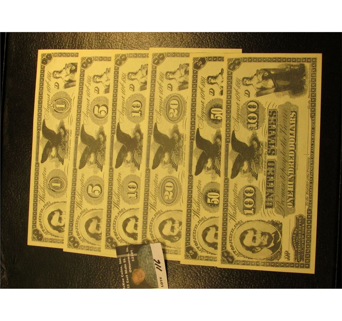 August 10th, 1861 $1, $5, $10, $20, $50, & $100 Movie Scrip Bank Notes, "American Bank Note Co. New