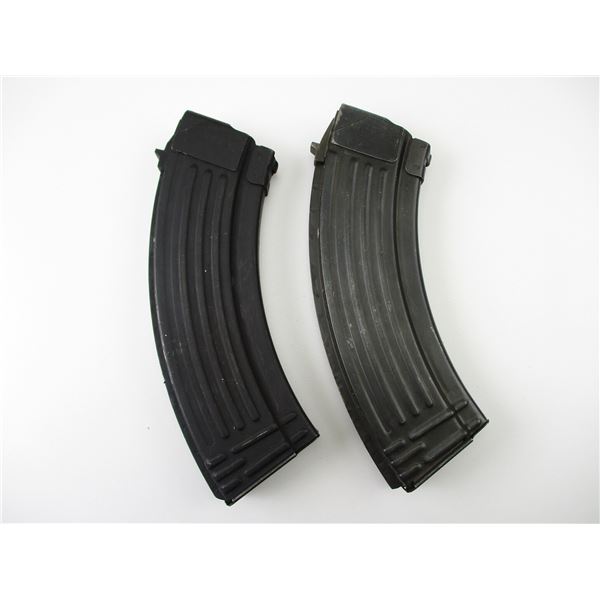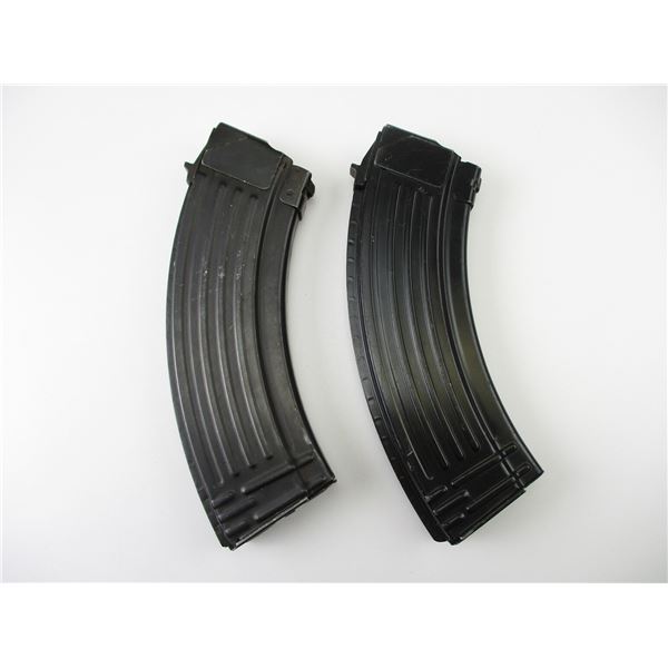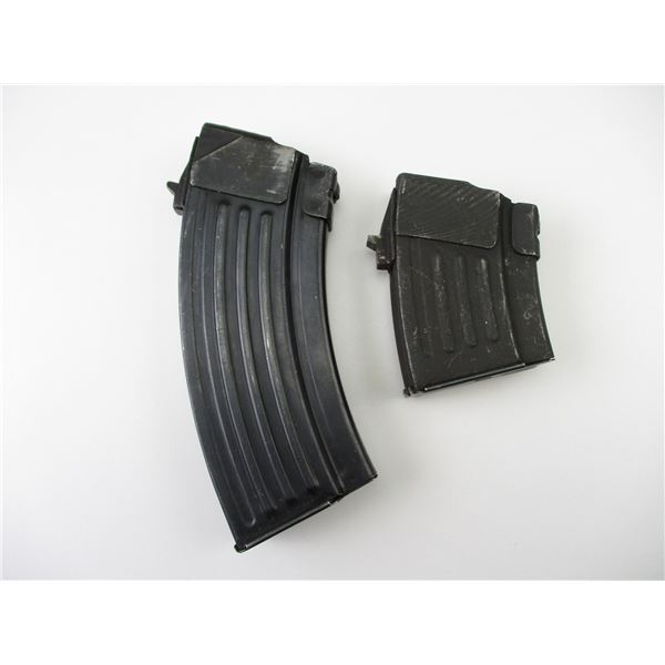 UNKNOWN AK-74 RIFLE MAGAZINES , LOT OF 2. 7.62X 39, (1) 5/10 ROUND MAG, STEEL, UNMARKED, (1) 5/20 ROUND PINNED MAG, STEEL, UNMARKED.