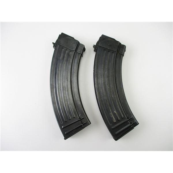 UNKNOWN AK-47 RIFLE MAGAZINES , LOT OF 2, 7.62X 39, 5/30 ROUND PINNED MAG, BLUED STEEL, RIDGE BACK, NO VISIBLE MARKINGS.