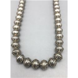 Description: Offered for sale in this lot we have a “Navajo pearls” or stamped silver beads necklace. The beads are all sterling sil