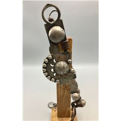 Description: Presented for sale in this lot is a fancy silver overlay bit that has a crescent moon and other designs on the shanks. Also has rein chai
