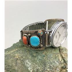 Description: Offered for sale in this lot we have this beautiful watch bracelet by the sought after Zuni artist, Effie Calavasa. It is set with turquo