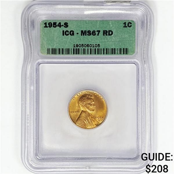 1954-S Wheat Cent ICG MS67 RD