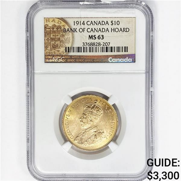 1914 Canadian $10 Gold (16.72g) NGC MS63