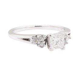One ring featuring: 14KT white gold weighing 6.00 grams containing one bezel set princess cut diamond and two pave set round diamonds with a total wei