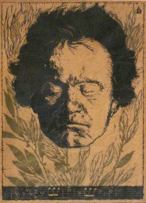 August Becker, , 1878 - 1942, Ludwig van Beethoven?, Woodcut, 37x27cm, Signed., , , , ,