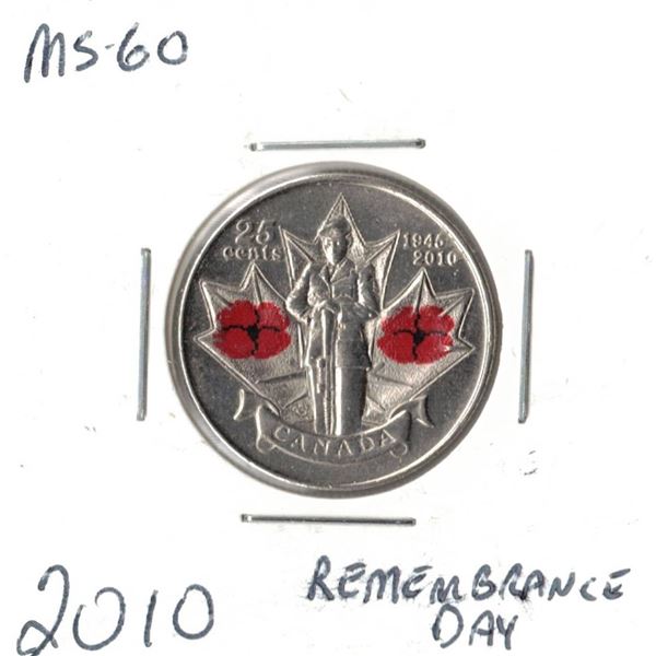 2010 Canadian Twenty-Five Cent - Double Poppy Coloured