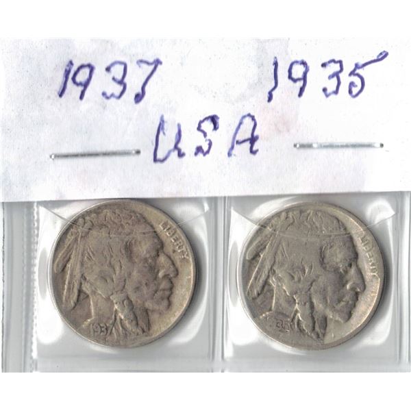 1935 & 1937 USA Buffalo Nickels