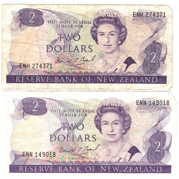 New Zealand Two Dollar Bills - ENH274371 & ENN149018