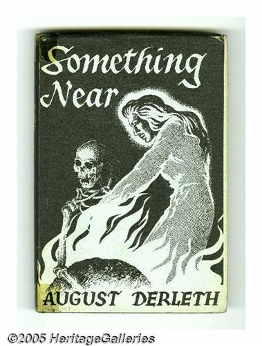 <B>August Derleth -- "Something Near," Signed First Edition (Arkham House, 1945).</B></I> One of 2,040 copies printed, signed "Spectrally, August Derleth" on the first free page. An nice, tight copy, it exhibits some wear and sunning along the spine and edges of the dust jacket, and has a piece of tape at the top and bottom spine of said jacket. Overall, it is in Very Good to Excellent condition with off-white pages and boards.