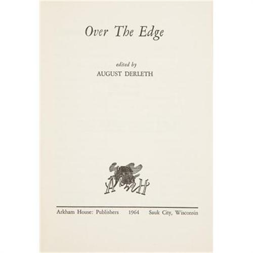 <B>August Derleth, editor. </B></I><B><I>Over the Edge: New Stories of the Macabre</B></I></B></I><B>.</B></I> Sauk City: Arkham House, 1964.<BR> <BR>First edition. Twelvemo. 297 pages. Jacket art by Frank Utpatel.<BR><BR>Original black cloth with titles in gilt on the spine. A handsome copy externally and internally in a similar jacket. Near fine.<BR><BR><BR><b>Shipping:</b> Books & Catalogs (<a target="_blank" href="http://www.heritageauctions.com/common/shipping.php">view shipping information</a>)