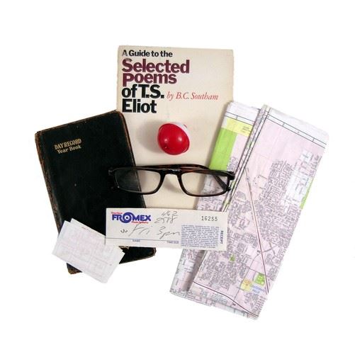 Beverly Weston (Sam Shepard) screen used, book, maps, eyeglasses, bobber, and other notes from his truck.