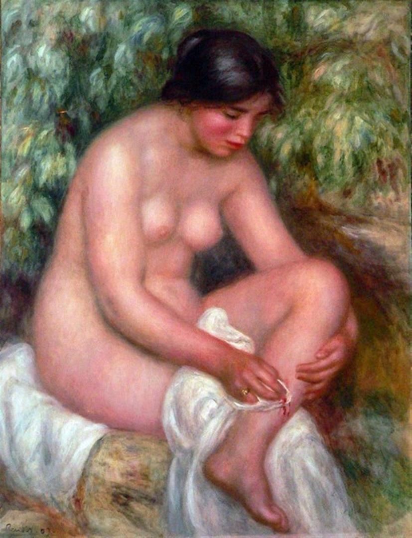 Artist: Pierre-Auguste Renoir 1841-1919 - Title: August Renoir Bathing - Medium: Fine Art Reproduction Giclee on Canvas - Image Size: Approximately 20 inches x 15.25 inches - Unframed on Unstretched Canvas - Biography: An innovative artist, Pierre-Auguste Renoir was born on February 25, 1841, in Limoges, France. He started out as an apprentice to a porcelain painter and studied drawing in his free time. After years as a struggling painter, Renoir helped launch an artistic movement called Impressionism in 1870s. He eventually became one of the most highly regarded artists of his time. He died in Cagnes-sur-Mer, France, in 1919. -