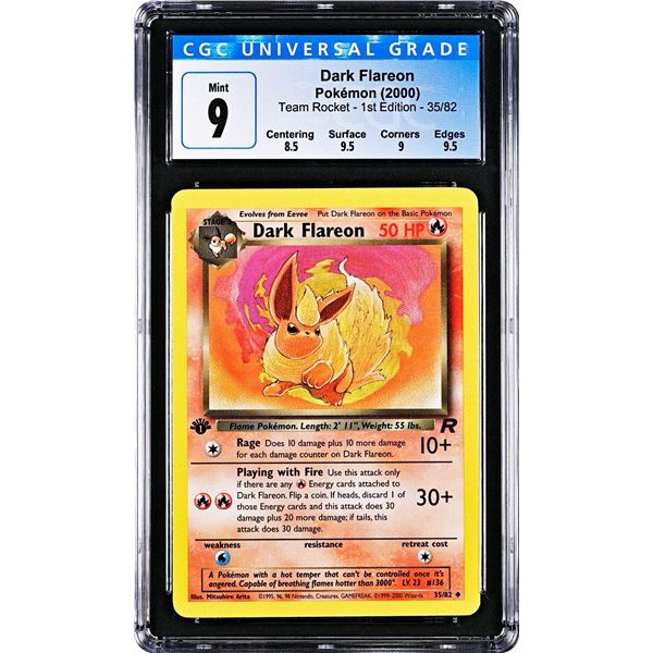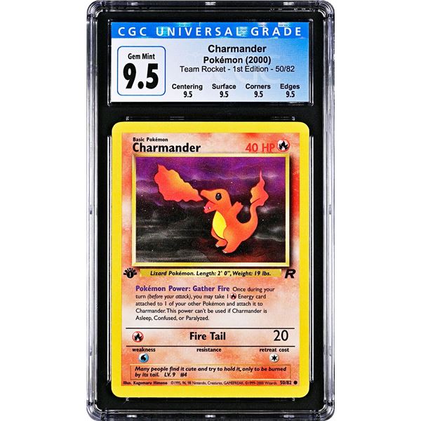 Near perfect Charmander Team Rocket 1st Edition from 2000, graded 9.5 GEM MINT by CGC. Of the 1,975 examples graded worldwide by CGC, ONLY 3 grade hi