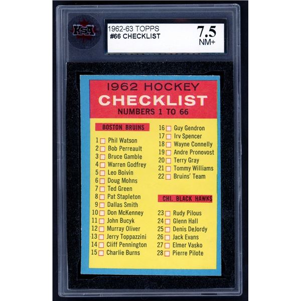 1962-63 Topps #66 Checklist (KSA 7.5)
