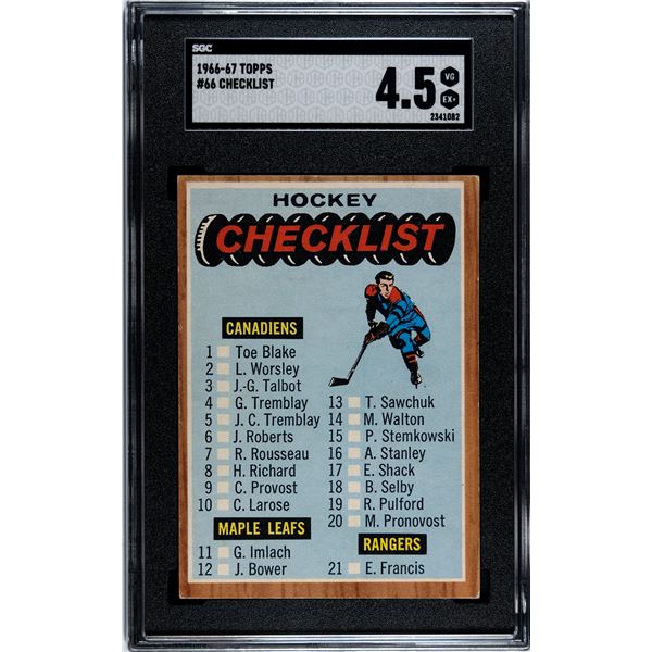 1966-67 Topps #66 Checklist (SGC 4.5)
