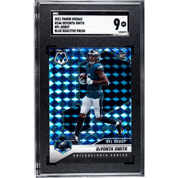 2021 Panini Mosaic NFL Debut Blue Reactive Prism, #246 Devonta Smith RC, graded 9 MINT by SGC.