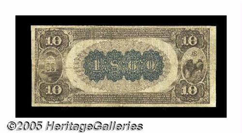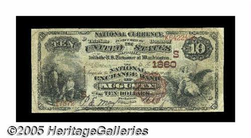 <B>Augusta, GA</B></I> - $10 1882 Brown Back Fr. 482 <B>The National Exchange Bank</B></I> Ch. # (S)1860<BR>A nice evenly circulated Brown Back from the home of the Masters. Sharp <B>Fine+,</B></I> with good signatures.