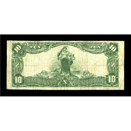 <B>Augusta, IL</B></I> - $10 1902 Plain Back Fr. 624 <B>The First NB</B></I> Ch. # 6751<BR>Great pen signatures adorn this $10. This bank was the lone national bank in town until it exited the banking stage on December 23, 1930. <B>Fine.</B></I><BR><BR><b>Shipping:</b> Coin/Currency (<a target="_blank" href="http://www.heritageauctions.com/common/shipping.php">view shipping information</a>)