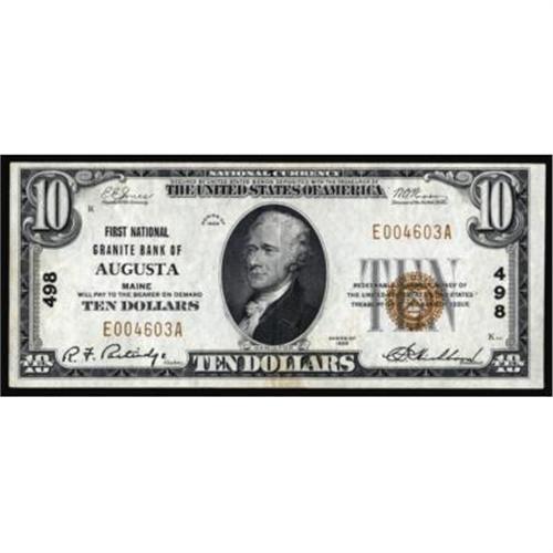 Augusta, ME. $10 1929 Ty. 1. FN Granite Bank.