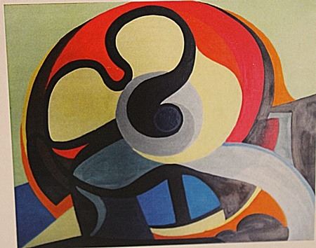In the manner of Auguste Herbin "Composition" oil on paper circa.1930, private collection approx. 11x14in. Herbin was a French painter of modern art. He is best known for his abstract paintings consisting of colorful geometric figures. He co-founded the groups Abstraction-Création and Salon des Réalités Nouvelles which promoted non-figurative abstract art.