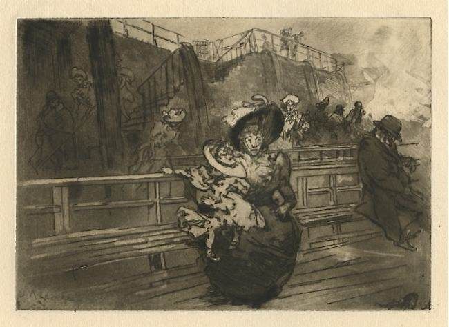 Auguste Louis Lepere Original Etching And Aquatint. - "Departure For Greenwich" - The Full French Title Of This Interesting Composition Is "Sur La Tamise: En Attendant Le Départ Du Bateau". Published In 1892 By Gazette Des Beaux Arts. Plate Size: 4 3/4 X 6 3/4 Inches (120 X 170 Mm) On Cream Laid Paper- Professionally Framed & Matted - Comes With Certificate - -