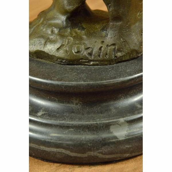 Cathedral Praying lady byAuguste Rodin. He was born in 1840 and is thought to be one of the greatest sculptors since Michaelangelo. His style is both classic and romantic and robust. The piece sits on an black marble base and is polished and made of bronze in the lost wax method. The French sculptor painter was born 1840 in Paris. He died in 1917. He is considered to be the founder of the impressionist style in the art of sculpture. Condition: This sculpture is in perfect condition. Bronze Dimensions with Marble Base:Height 13" X Width 4 1/2" Marble Dimensions: Diameter 4 1/2" Height without base: 12" Weight : 7 LBS Inventory:64DS5924846