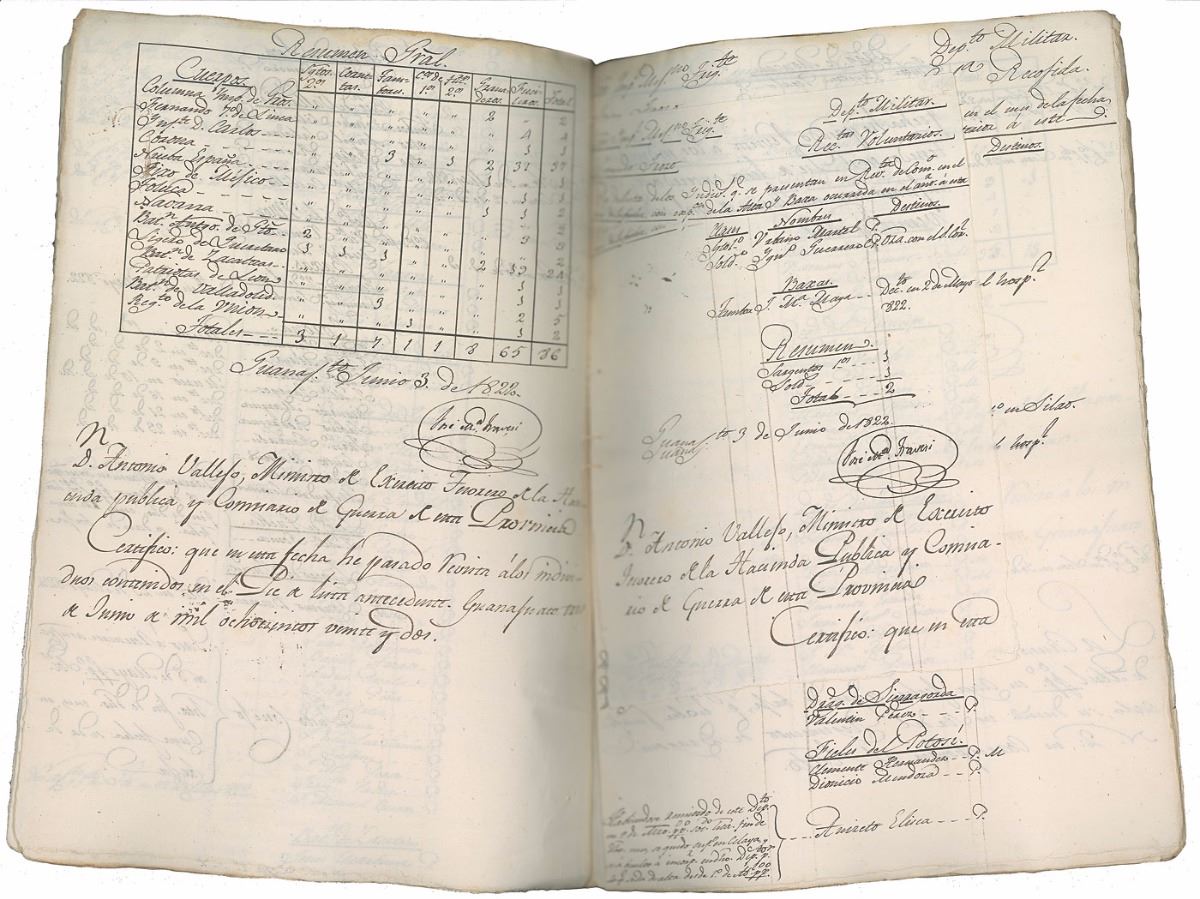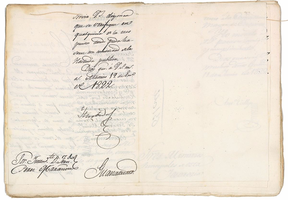 Mexican army general whose political and military coalition seized control of Mexico City in 1821 to decisively end the Mexican War of Independence (1783–1824). Manuscript DS in Spanish, signed “Iturbide,” 30 pages, 8.5 x 12, June 1822. Untranslated thirty-page compilation of several documents listing military returns and expenditures for the month of June 1822, primarily dealing with military returns for the state of Guanajuanto, including the city of Salvatierra. Signed on the last page by Iturbide at the beginning of his yearlong stint as emperor of Mexico. In fine condition.