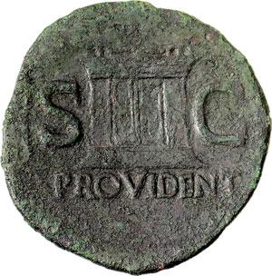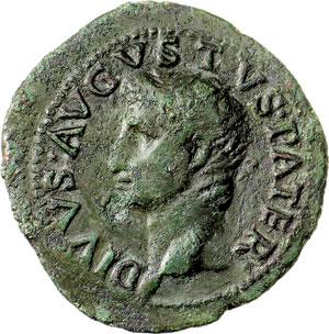 Impero Romano. Augusto (27 a.C-14 d.C). Asse, emesso da Tiberio. D/ DIVVS AVGVSTVS PATER. Testa radiata a sinistra. R/ PROVIDENT SC. Altare monumentale. RIC (Tib.) 81. AE. g. 10.15 mm. 33.00 Bel BB+/BB. Di stile magistrale e modulo straordinario. Patina verde.