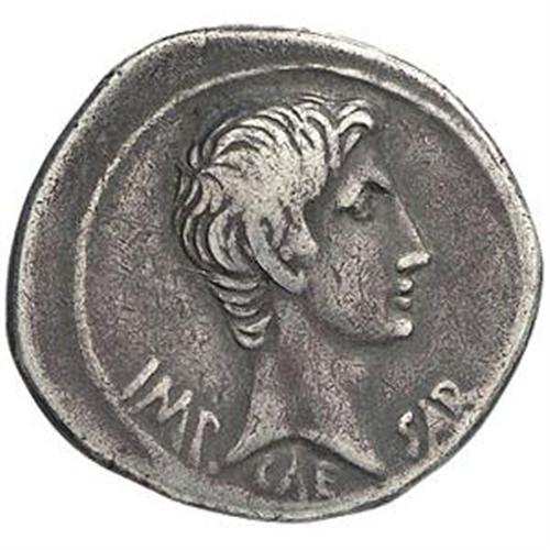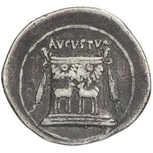 Impero Romano. Augusto (27 a.C.-14 d.C.). Cistoforo, Ephesus. D/ IMP CAESAR. Testa nuda a destra. R/ AVGVSTVS. Altare decorato con due cervi e addobbato con festoni. RIC 479. gr. 11.51 RR. AG. BB.