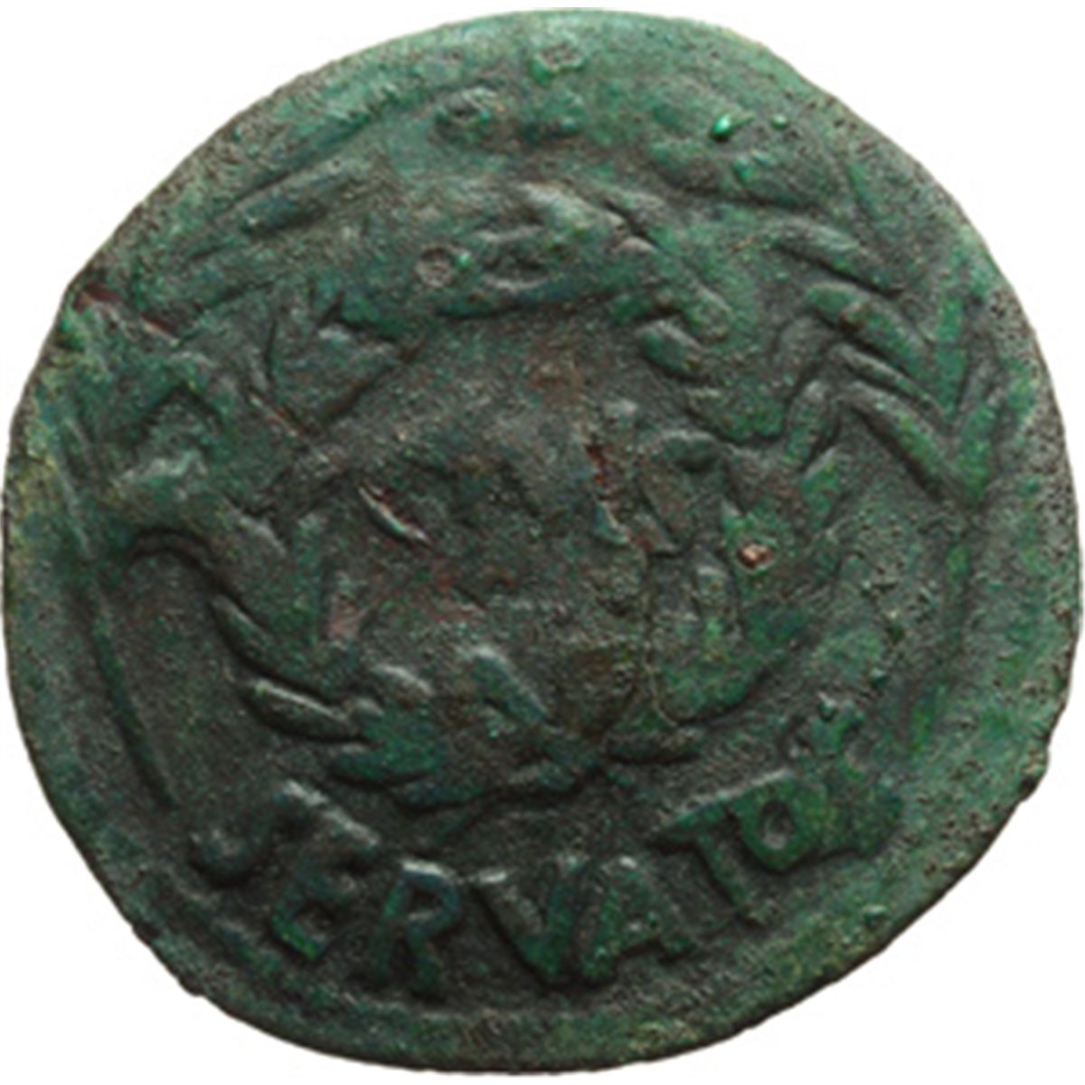 Impero Romano. Augusto (27 a.C-14 d.C). Sesterzio. D/ CIVIS entro corona di quercia, tra le due rami di lauro. Sopra e sotto, OB-SERVATOS. R/ C GALLVS CF LVPERCVS III VIR AAA FF intorno a grande SC. RIC 377. AE. g. 21.28 mm. 38.50 R. Patina verde. BB/BB+.