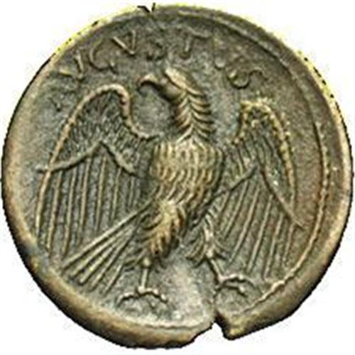 <B>Augustus.</B></I> 27 B.C.-A.D. 14. Æ quadrans (19 mm, 2.77 g). Lugdunum, ca. 10 B.C. Laureate head right / Eagle standing right, wings spread, head turned to left. RIC 227; RPC 508. Choice VF, brown patina, edge split.