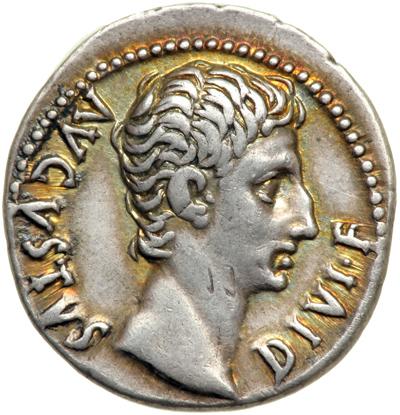 Augustus, 27 BC-AD 14. AR Denarius struck at Lugdunum, 15-13 BC