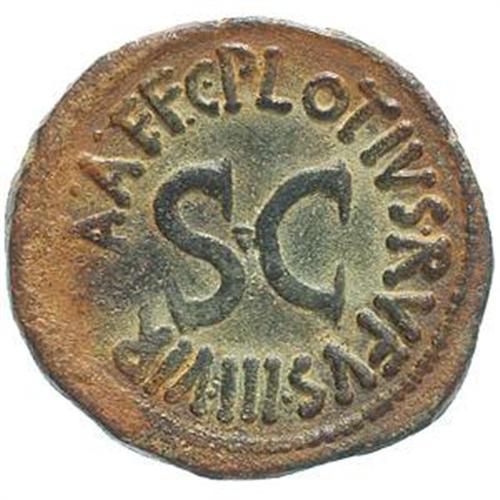 Roman Empire Coins. Augustus (27 a.C.-14 d.C.). Asse (C. Plotius Rufus). D/ CAESAR AVGVSTVS TRIBVNIC POTEST.Testa nuda a destra. R/ PLOTIVS RVFVS III VIR AAA FF intorno a grande SC. RIC 389. gr. 10.40 AE. Delicata patina verde, esaltata da un alone color cuoio sulle legende. qSPL.