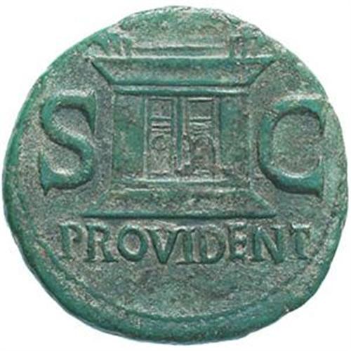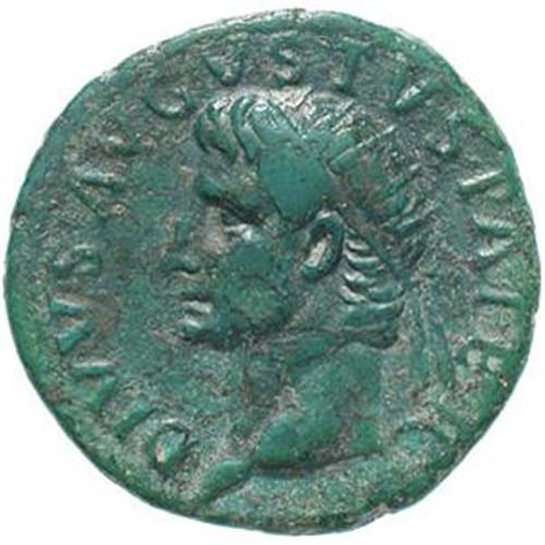 Roman Empire Coins. Augustus (27 a.C. - 14 d.C.). Asse, emesso da Tiberio. D/ DIVVS AVGVSTVS PATER. Testa radiata a sinistra. R/ PROVIDENT SC. Altare monumentale. RIC (Tib.) 81. gr. 10.81 AE. Bel BB+/qSPL. Superba patina verde smeraldo.