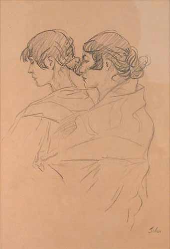 Augustus John (1878-1961) charcoal, The Two Gitanas, signed, 15.75 x 10.75 ins. £2,000-3,000