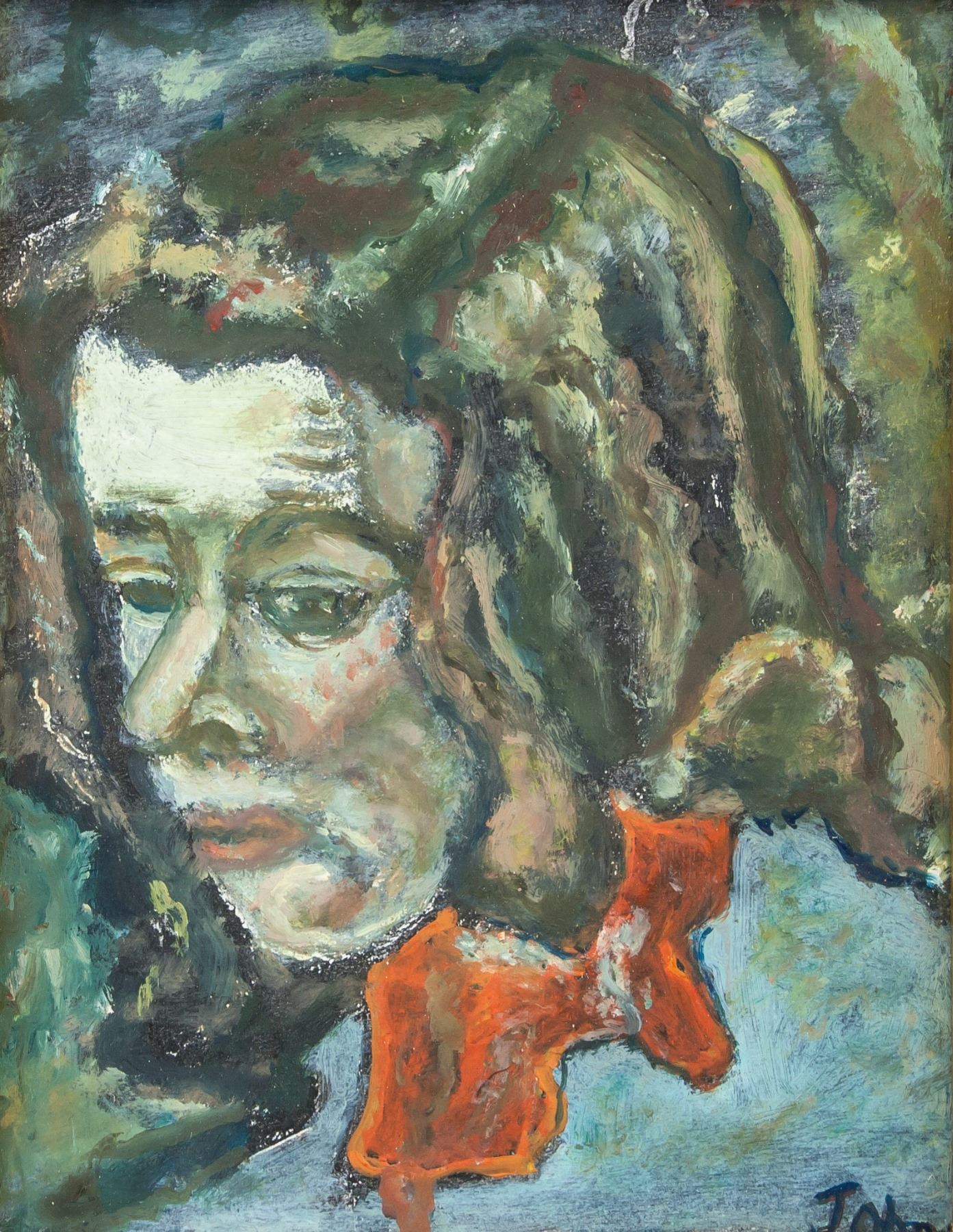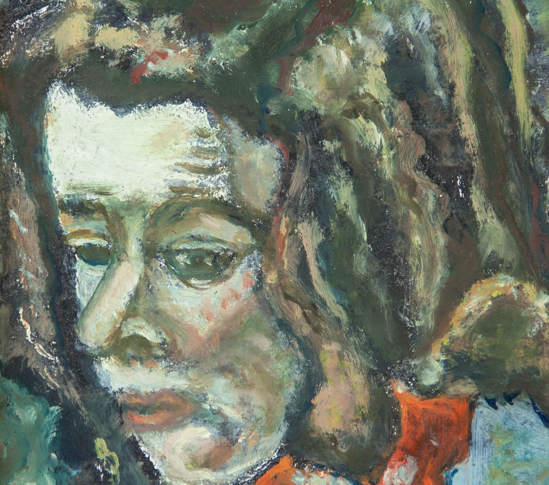 Gouache on paper, framed, featuring a female portrait. Signed Augustus John (1878-1961, British) on the lower right corner. 8.5 x 6.3 in. (21.5 x 16 cm).