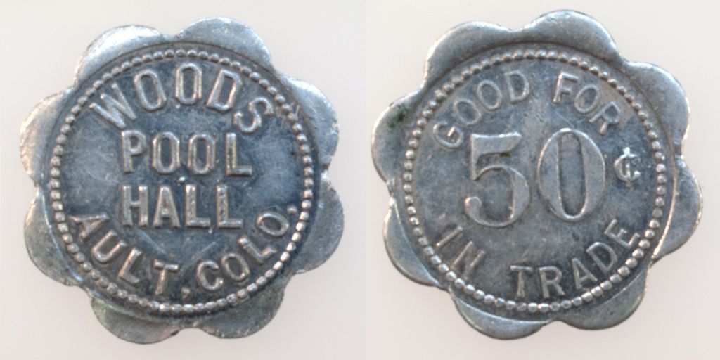 Woods Pool Hall, Ault, Colo. GF 50C IT. Unlisted